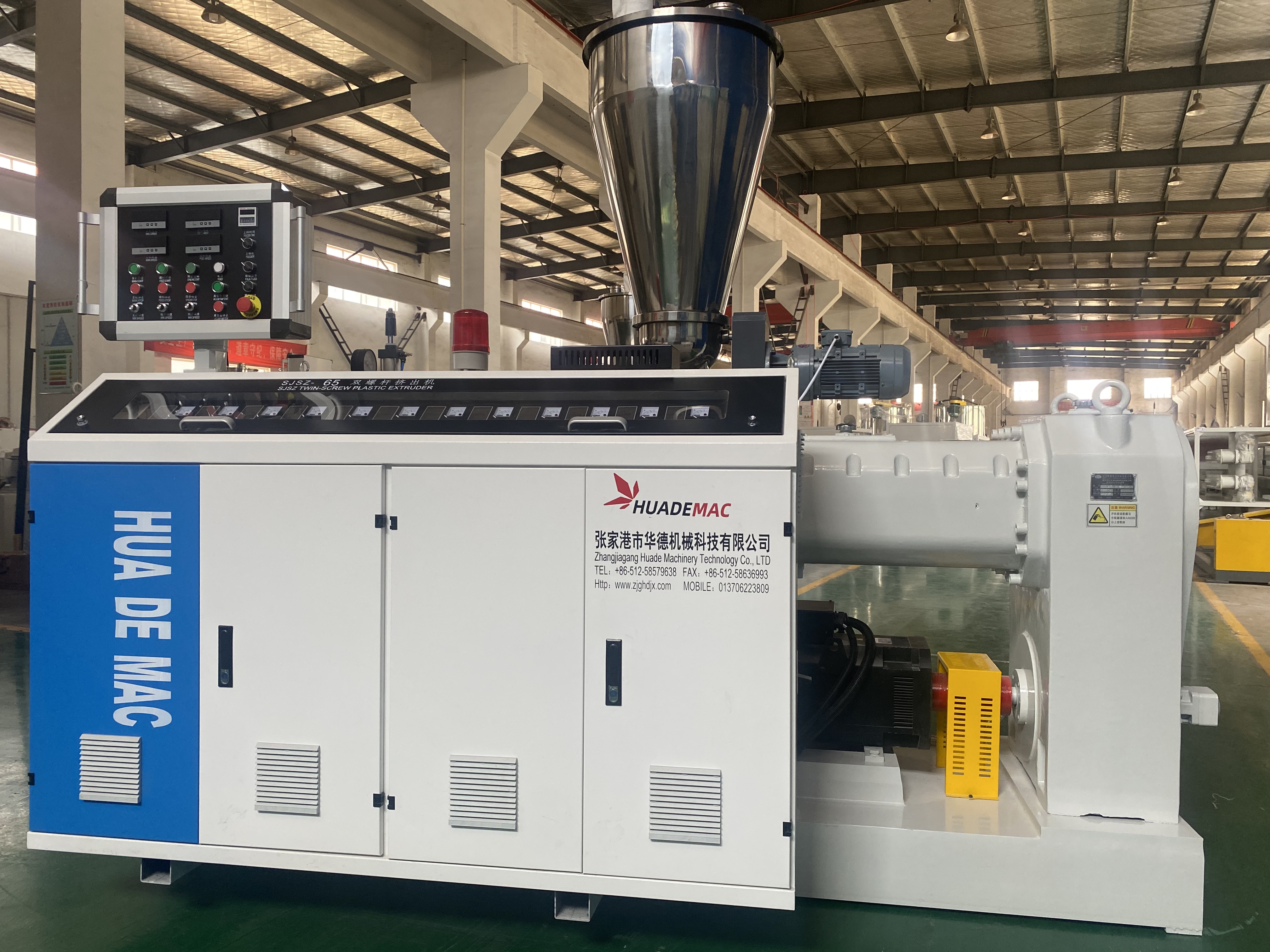 專業制造:系列單雙螺桿擠出機、PPR管材生產線、PVC給水/排水管材生產線、HDPE管材生產線、MPP/CPVC電力管生產線、PVC各類異型材等成套擠出生產線及干燥機、上料機、破碎機、擴口機、高速混合機、牽引機、磨粉機等系列塑料機械。